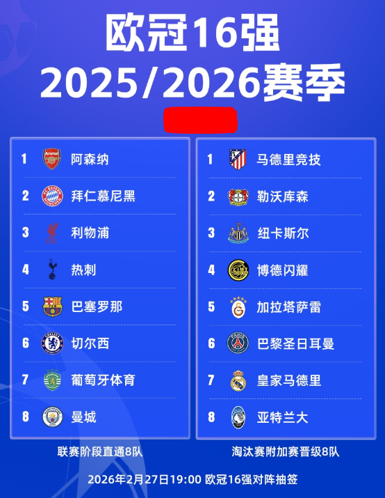 附加赛打完之后,本赛季欧冠16强抽签仪式在瑞士尼翁的欧足联总部正式举行。在抽签官员马尔凯蒂的协助下,嘉宾伊万·拉基蒂奇亲手决定了各支球队的命运。随着淘汰赛抽签落定,本赛季的欧冠晋级之路就此清晰。皇马再遇曼城、巴黎大战切尔西,看点十足吸引眼球;上半区豪门云集堪称死亡半区,而下半区的阿森纳则抽得上上签,难道本赛季真是阿尔特塔的机会?自然也不要轻视巴萨,上赛季止步半决赛的亚马尔,对此不满,这赛季的他们有机会“卷土重来”。