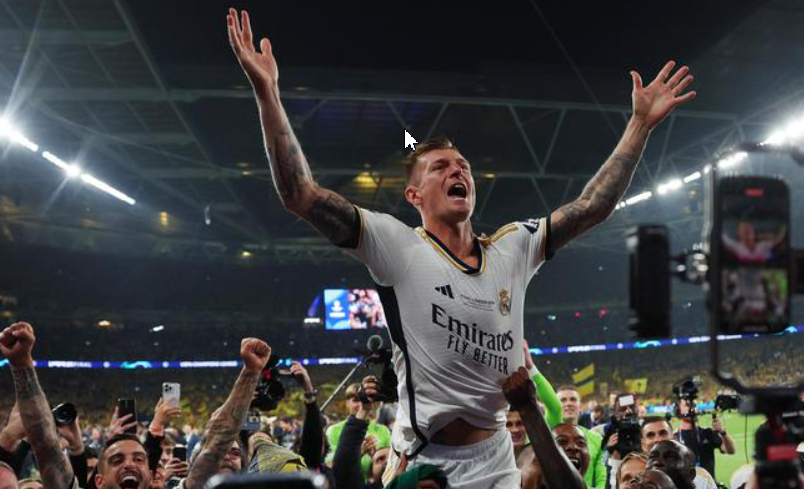 第83分钟,多特后防马特森回传失误,贝林厄姆断球后弧顶分到左侧,无人防守的维尼修斯跟进面对科贝尔左脚抽射破门,皇马把比分改写为2-0。第85分钟,安切洛蒂用莫德里奇换下本场比赛送上助攻的克罗斯,克罗斯结束了作为皇马球员的最后一场比赛。克罗斯下场和莫德里奇以及安切洛蒂一一拥抱。